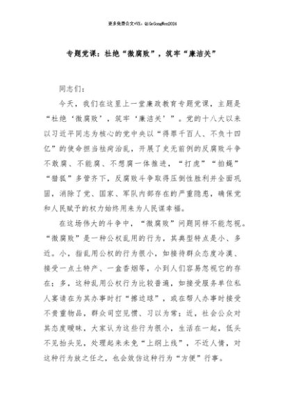 / 【七哥公文】2024年:专题党课:杜绝“微腐败”,筑牢“廉洁关”+更多免费公文+VX:QiGeGongWen2024