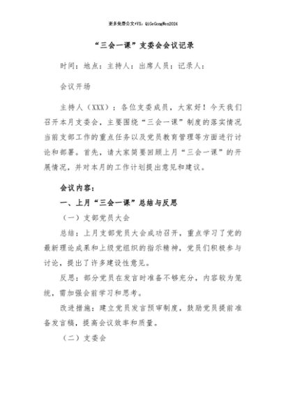 / 【七哥公文】2024年:“三会一课”支委会会议记录+更多免费公文+VX:QiGeGongWen2024