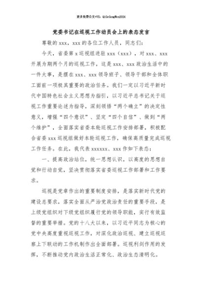 / 【七哥公文】2024年:党委书记在巡视工作动员会上的表态发言+更多免费公文+VX:QiGeGongWen2024