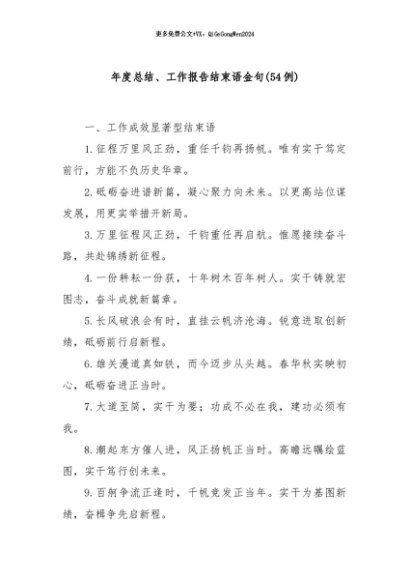 【七哥公文】2024年:(54例)年度总结、工作报告结束语金句+更多免费公文+VX:QiGeGongWen2024