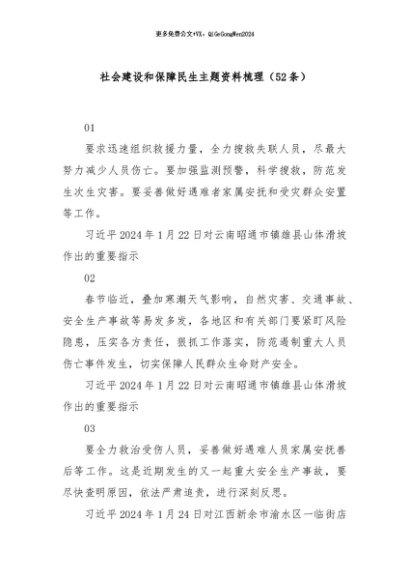 / 【七哥公文】2024年:(52条)社会建设和保障民生主题资料梳理+更多免费公文+VX:QiGeGongWen2024