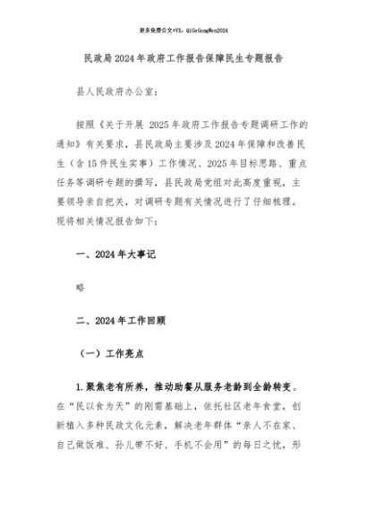 / 【七哥公文】2024年:民政局2024年政府工作报告保障民生专题报告+更多免费公文+VX:QiGeGongWen2024