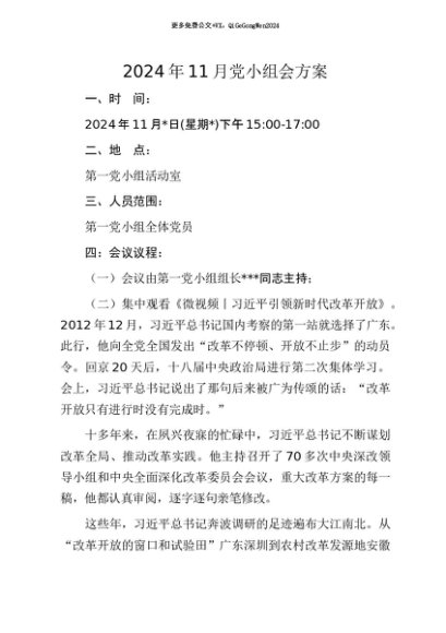 / 【七哥公文】2024年:2024年11月党小组会方案+更多免费公文+VX:QiGeGongWen2024