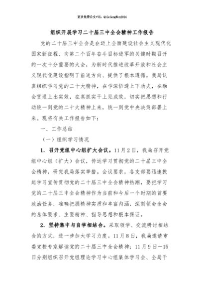 / 【七哥公文】2024年:组织开展学习二十届三中全会精神工作报告+更多免费公文+VX:QiGeGongWen2024