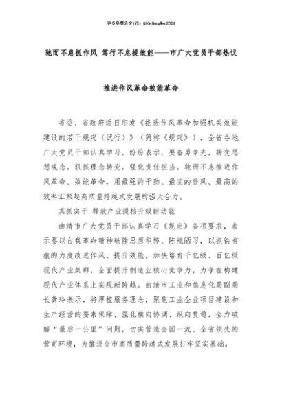 【七哥公文】2024年:驰而不息抓作风 笃行不怠提效能——市广大党员干部热议推进作风革命效能革命+更多免费公文+VX:QiGeGongWen2024