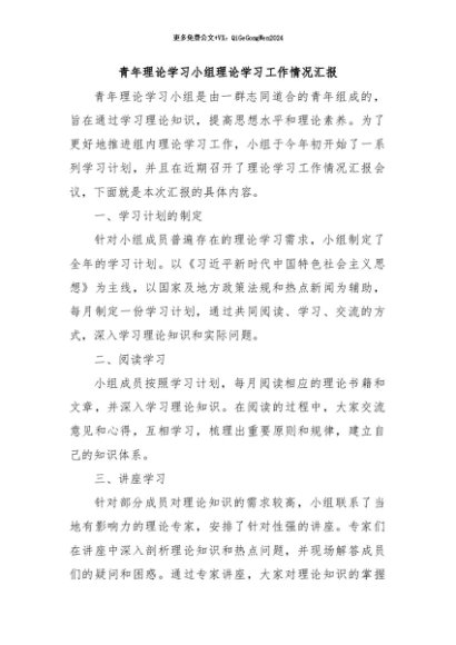 / 【七哥公文】2024年:青年理论学习小组理论学习工作情况汇报+更多免费公文+VX:QiGeGongWen2024