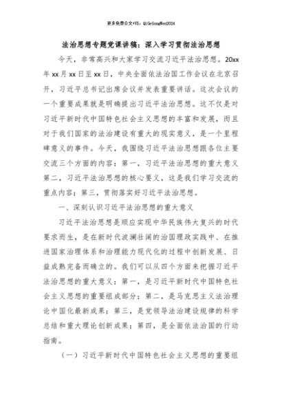 / 【七哥公文】2024年:治思想专题党课讲稿: 深入学习贯彻法治思想+更多免费公文+VX:QiGeGongWen2024