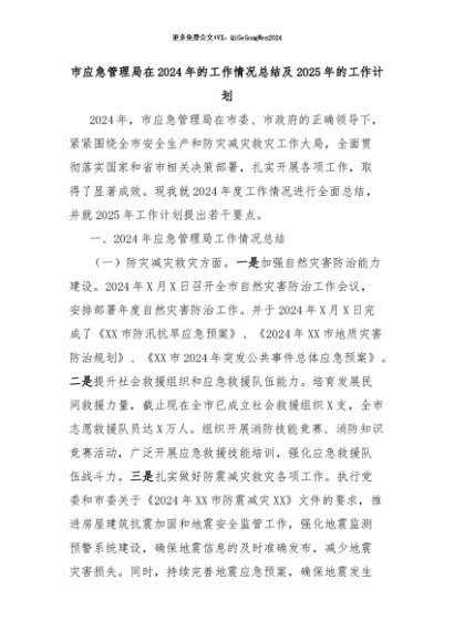 【七哥公文】2024年:市应急管理局在2024年的工作情况总结及2025年的工作计划+更多免费公文+VX:QiGeGongWen2024