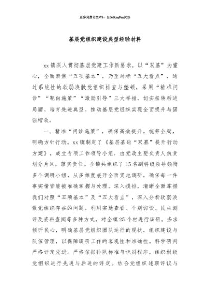 / 【七哥公文】2024年:基层党组织建设典型经验材料+更多免费公文+VX:QiGeGongWen2024