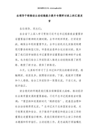 【七哥公文】2024年:在领导干部推动主动创稳能力提升专题研讨班上的汇报发言+更多免费公文+VX:QiGeGongWen2024