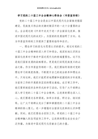 / 【七哥公文】2024年:学习党的二十届三中全会精神心得体会(市委宣传部)+更多免费公文+VX:QiGeGongWen2024