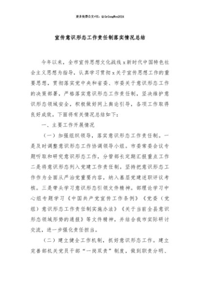 / 【七哥公文】2024年:宣传意识形态工作责任制落实情况总结 (1)+更多免费公文+VX:QiGeGongWen2024