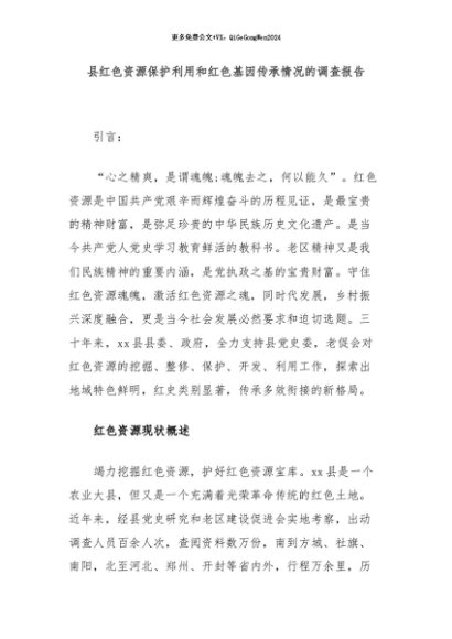 / 【七哥公文】2024年:县红色资源保护利用和红色基因传承情况的调查报告+更多免费公文+VX:QiGeGongWen2024