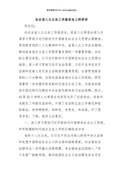 / 【七哥公文】2024年:在全省人大立法工作座谈会上的讲话+更多免费公文+VX:QiGeGongWen2024