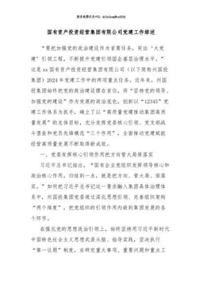 / 【七哥公文】2024年:国有资产投资经营集团有限公司党建工作综述+更多免费公文+VX:QiGeGongWen2024