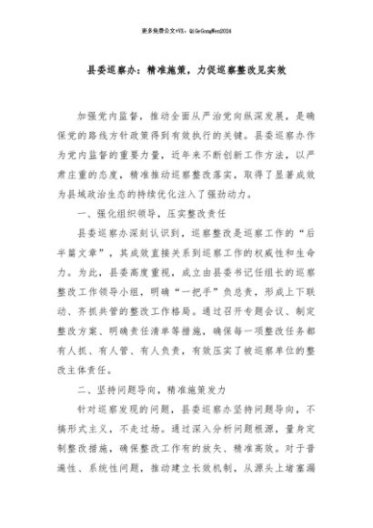 / 【七哥公文】2024年:县委巡察办:精准施策,力促巡察整改见实效+更多免费公文+VX:QiGeGongWen2024