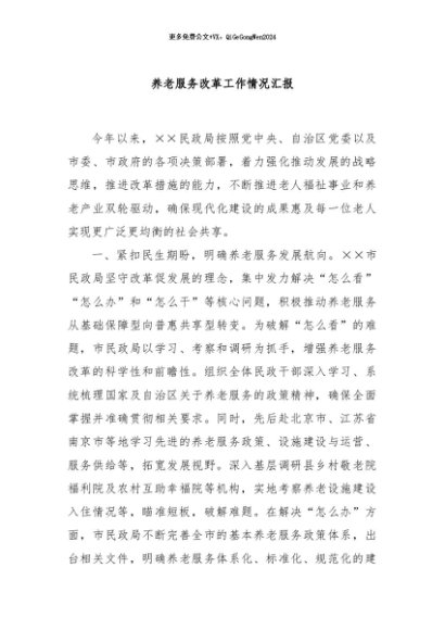 / 【七哥公文】2024年:养老服务改革工作情况汇报+更多免费公文+VX:QiGeGongWen2024