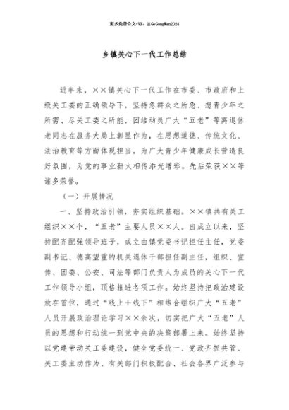 / 【七哥公文】2024年:乡镇关心下一代工作总结+更多免费公文+VX:QiGeGongWen2024