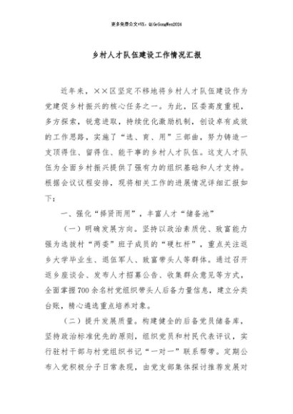 / 【七哥公文】2024年:乡村人才队伍建设工作情况汇报+更多免费公文+VX:QiGeGongWen2024