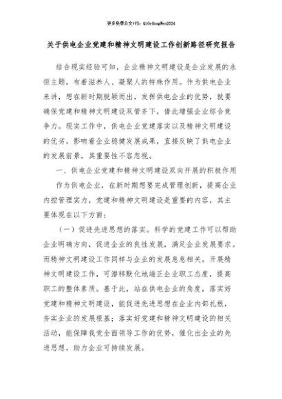 【七哥公文】2024年:关于供电企业党建和精神文明建设工作创新路径研究报告+更多免费公文+VX:QiGeGongWen2024