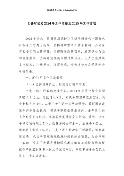 / 【七哥公文】2024年:X县财政局2024年工作总结及2025年工作计划+更多免费公文+VX:QiGeGongWen2024