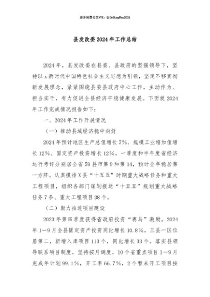 / 【七哥公文】2024年:县发改委2024年工作总结+更多免费公文+VX:QiGeGongWen2024