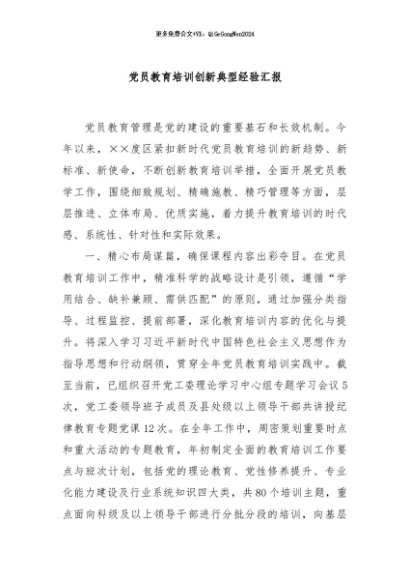 / 【七哥公文】2024年:党员教育培训创新典型经验汇报+更多免费公文+VX:QiGeGongWen2024