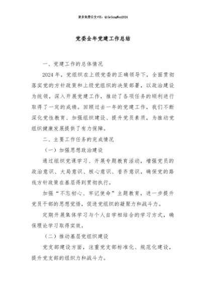 / 【七哥公文】2024年:党委全年党建工作总结+更多免费公文+VX:QiGeGongWen2024