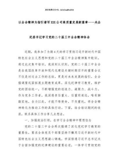 【七哥公文】2024年:以全会精神为指引谱写XXX公司高质量发展新篇章——央企纪委书记学习党的二十届三中全会精神体会+更多免费公文+VX:QiGeGongWen2024