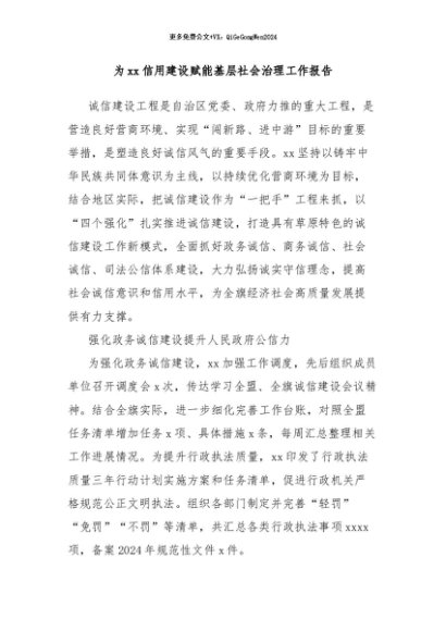 / 【七哥公文】2024年:为xx信用建设赋能基层社会治理工作报告+更多免费公文+VX:QiGeGongWen2024