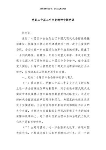 / 【七哥公文】2024年:党的二十届三中全会精神专题党课+更多免费公文+VX:QiGeGongWen2024