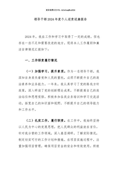 / 【七哥公文】2024年:领导干部2024年度个人述责述廉报告+更多免费公文+VX:QiGeGongWen2024
