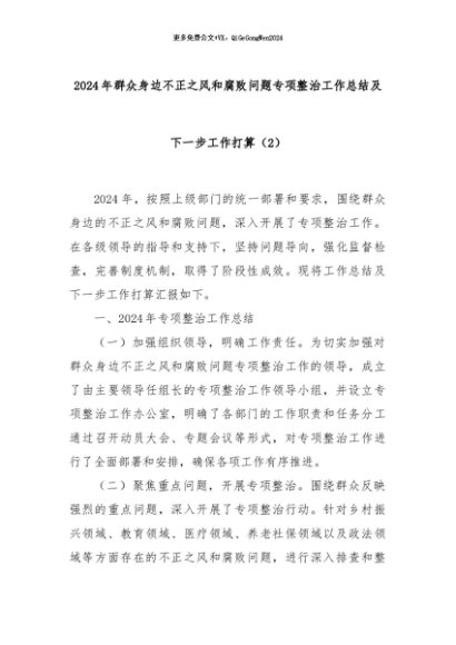 【七哥公文】2024年:2024年群众身边不正之风和腐败问题专项整治工作总结及下一步工作打算(2)+更多免费公文+VX:QiGeGongWen2024