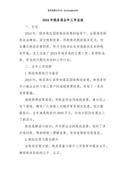 / 【七哥公文】2024年:2024年税务局全年工作总结+更多免费公文+VX:QiGeGongWen2024