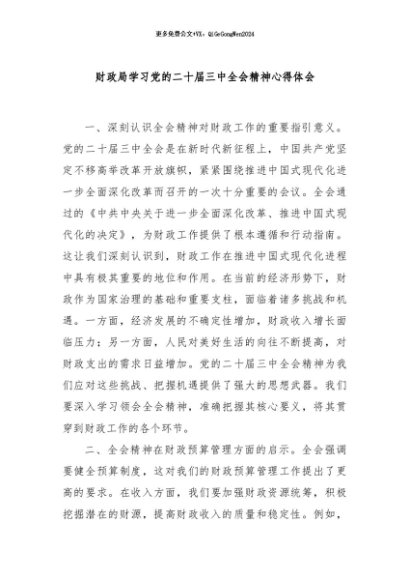 / 【七哥公文】2024年:财政局学习党的二十届三中全会精神心得体会+更多免费公文+VX:QiGeGongWen2024