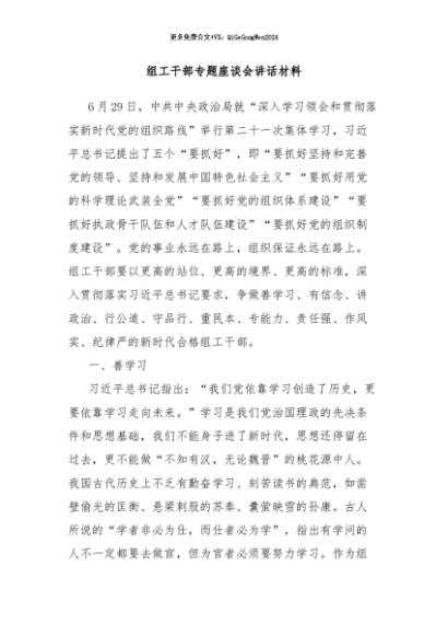 / 【七哥公文】2024年:组工干部专题座谈会讲话材料+更多免费公文+VX:QiGeGongWen2024