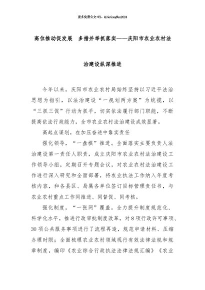 【七哥公文】2024年:高位推动促发展 多措并举抓落实——庆阳市农业农村法治建设纵深推进+更多免费公文+VX:QiGeGongWen2024