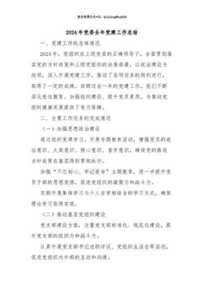 / 【七哥公文】2024年:2024年党委全年党建工作总结+更多免费公文+VX:QiGeGongWen2024