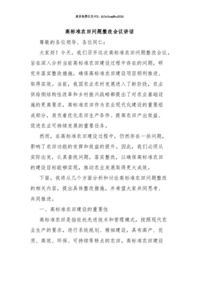 / 【七哥公文】2024年:高标准农田问题整改会议讲话+更多免费公文+VX:QiGeGongWen2024