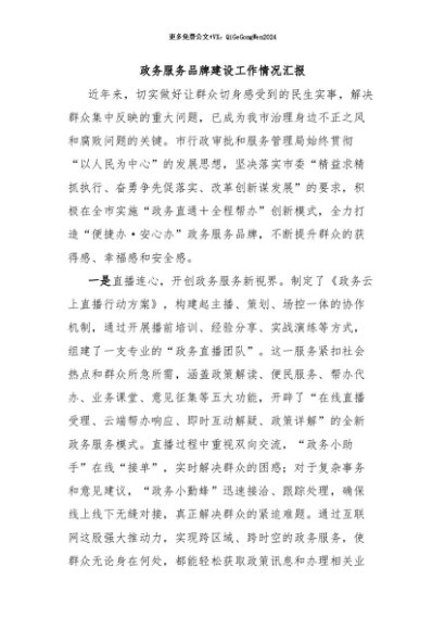 / 【七哥公文】2024年:政务服务品牌建设工作情况汇报+更多免费公文+VX:QiGeGongWen2024