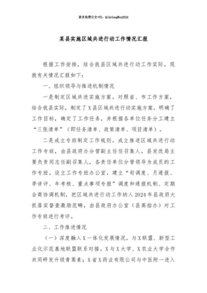 / 【七哥公文】2024年:某县实施区域共进行动工作情况汇报+更多免费公文+VX:QiGeGongWen2024