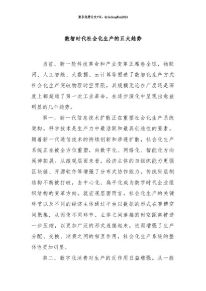 / 【七哥公文】2024年:数智时代社会化生产的五大趋势+更多免费公文+VX:QiGeGongWen2024
