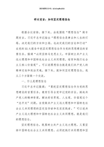 / 【七哥公文】2024年:研讨发言:如何坚定理想信念+更多免费公文+VX:QiGeGongWen2024