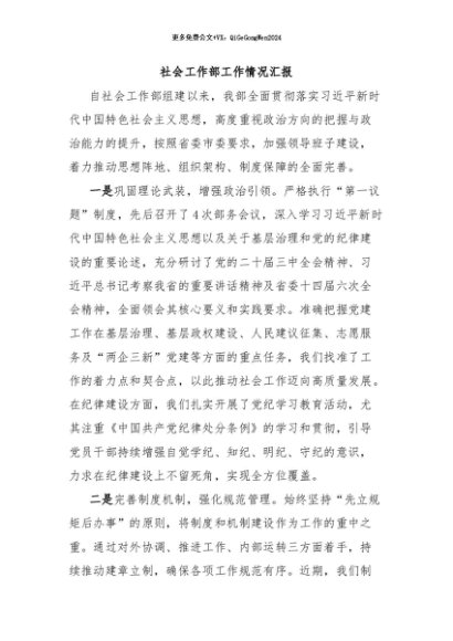 / 【七哥公文】2024年:社会工作部工作情况汇报+更多免费公文+VX:QiGeGongWen2024