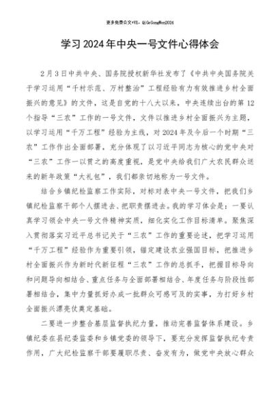 / 【七哥公文】2024年:学习2024年中央一号文件心得体会+更多免费公文+VX:QiGeGongWen2024