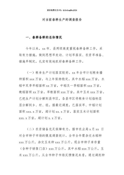 / 【七哥公文】2024年:对当前春耕生产的调查报告+更多免费公文+VX:QiGeGongWen2024