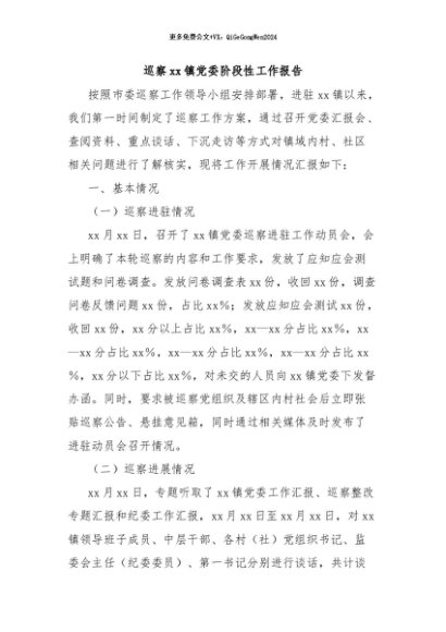 / 【七哥公文】2024年:巡察xx镇党委阶段性工作报告+更多免费公文+VX:QiGeGongWen2024
