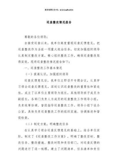 / 【七哥公文】2024年:巡查整改情况报告+更多免费公文+VX:QiGeGongWen2024