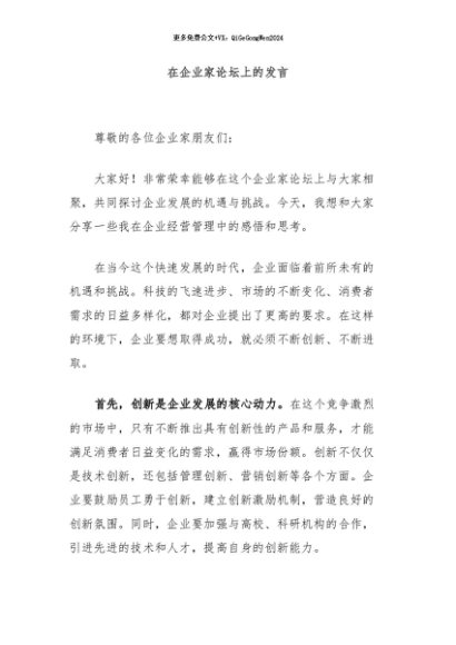 / 【七哥公文】2024年:在企业家论坛上的发言+更多免费公文+VX:QiGeGongWen2024