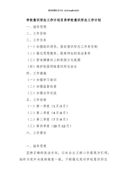 / 【七哥公文】2024年:学校意识形态工作计划+更多免费公文+VX:QiGeGongWen2024